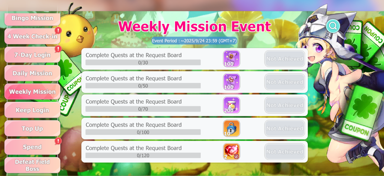 You can get rewards by successfully finishing the Weekly missions!