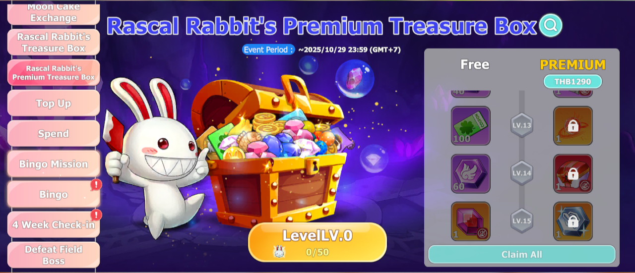 2. It can be used to level up the ‘Rascal Rabbit’s Premium Treasure Box’. You can level the treasure box up to level 15