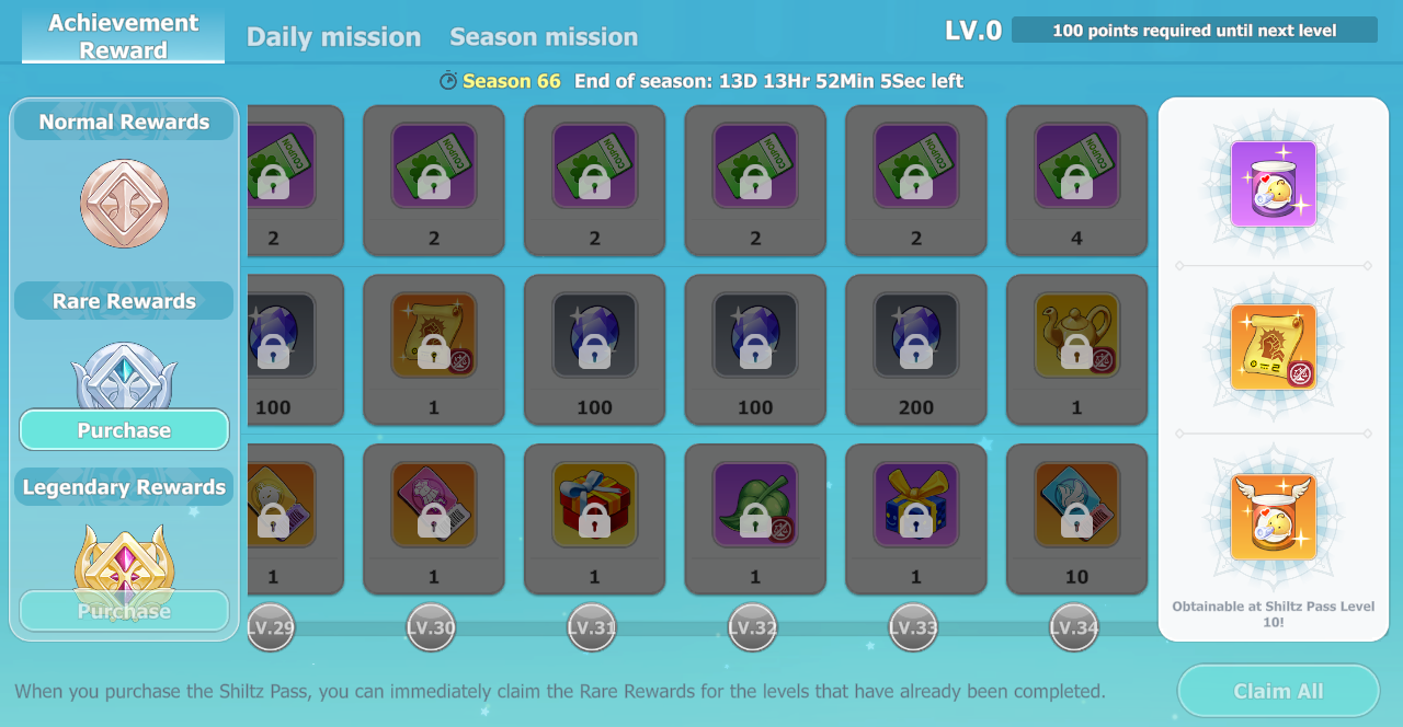 Level up your Shiltz Pass by completing daily and season missions in order to unlock rewards!
