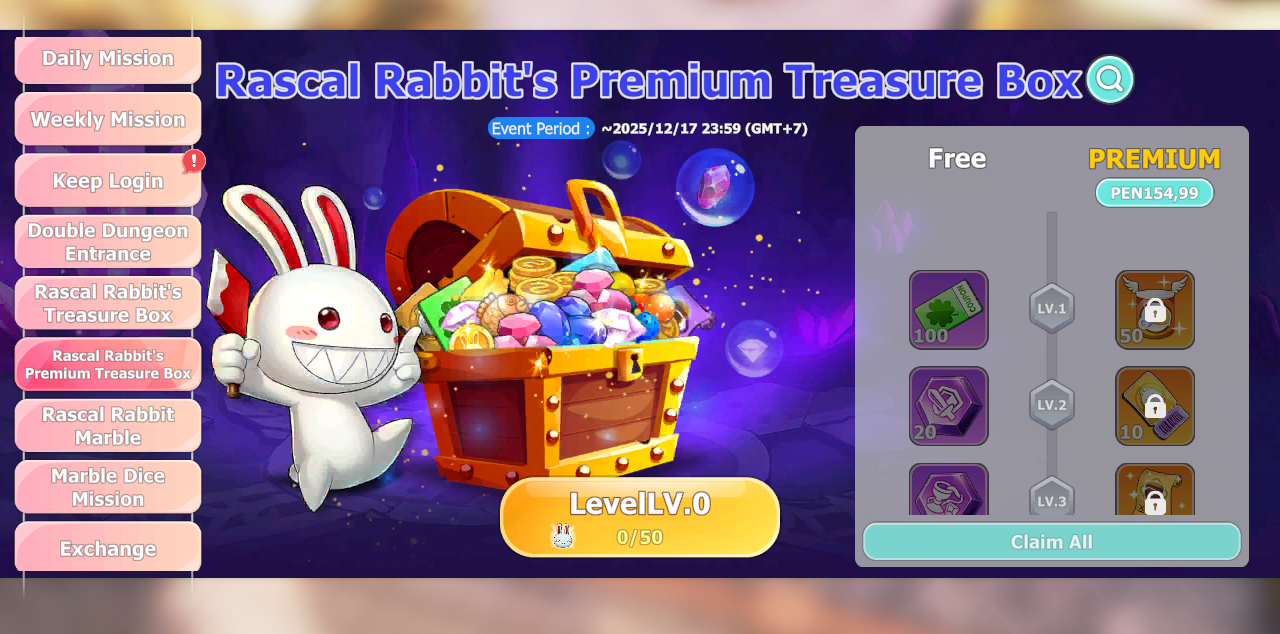 2. It can be used to level up the ‘Rascal Rabbit’s Premium Treasure Box’. You can level the treasure box up to level 15
