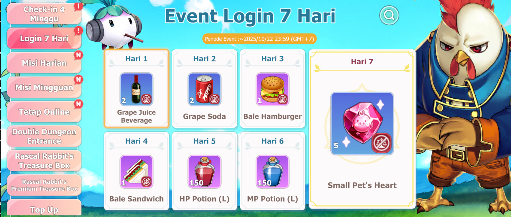 • Hadiah event login diberikan kepada player yang login setiap hari.