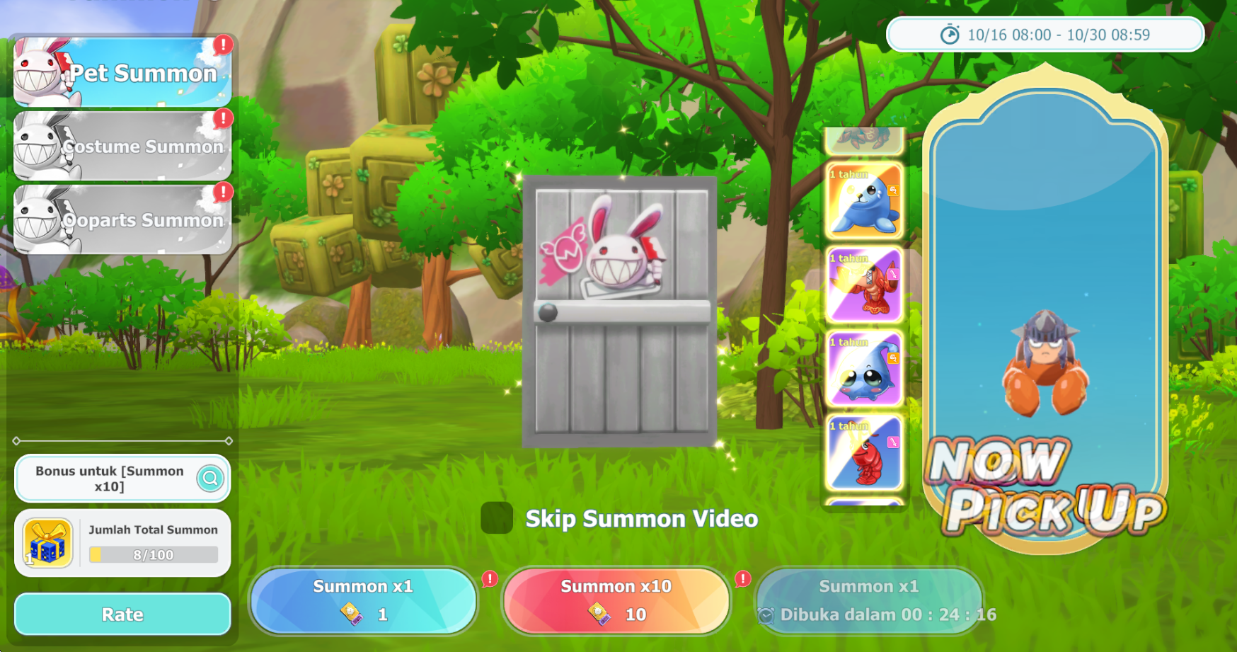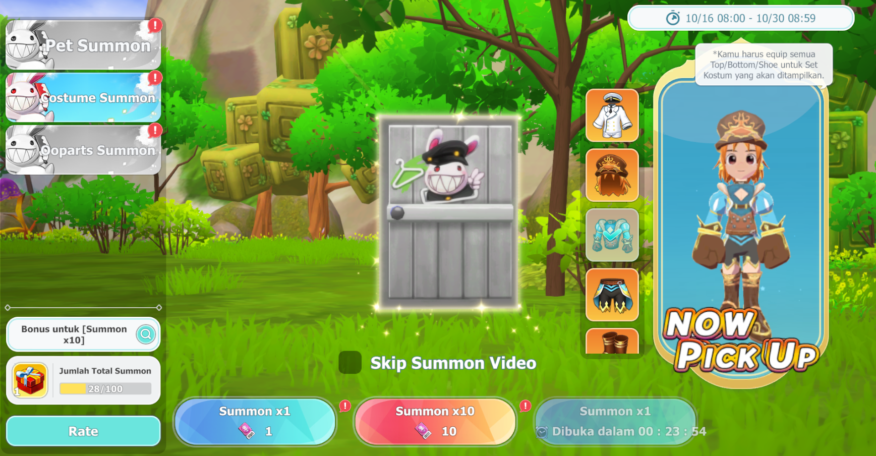 Sekarang adalah kesempatan kamu untuk mendapatkannya selama event, Pet dan Costume yang ditampilkan di sisi kanan akan memiliki rate yang lebih tinggi untuk di-summon!