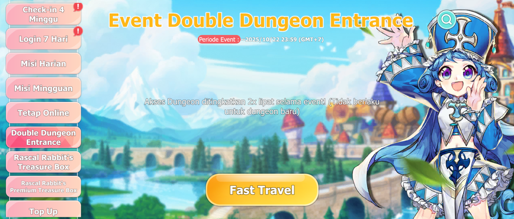 Selama event berlangsung, jumlah dungeon yang dapat kamu selesaikan akan berlipat ganda.