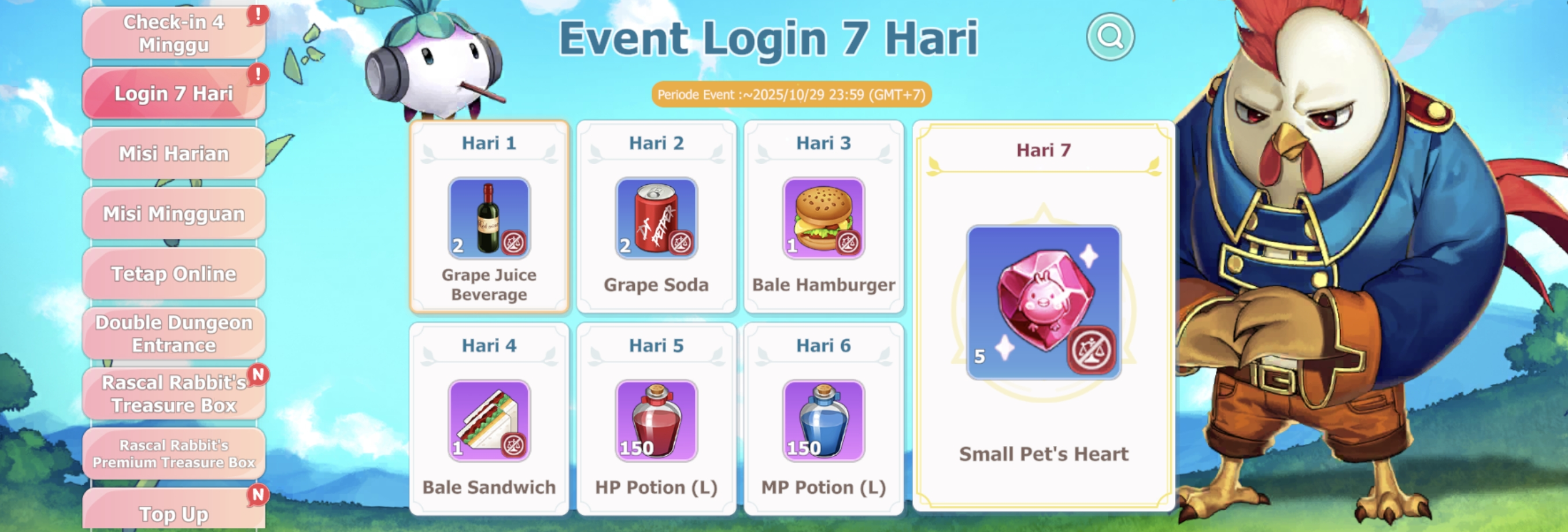 • Hadiah event login diberikan kepada player yang login setiap hari.