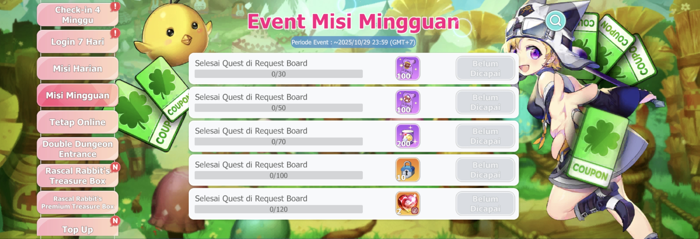 • Kamu harus login setiap hari, jika tidak, kamu tidak akan dapat membuat progres dalam misi.
