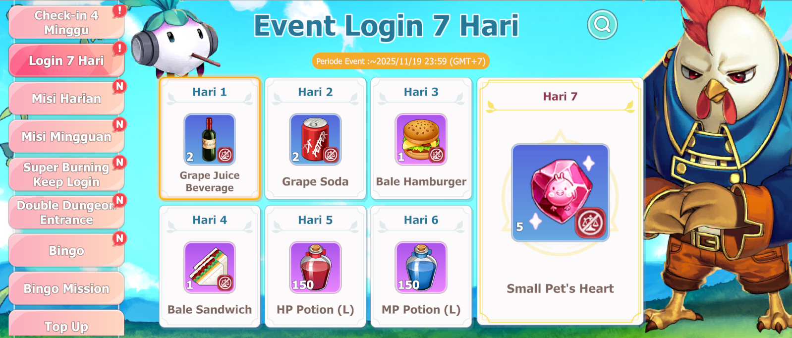 • Hadiah event login diberikan kepada player yang login setiap hari.