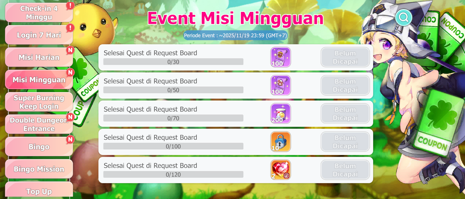 • Kamu harus login setiap hari, jika tidak, kamu tidak akan dapat membuat progres dalam misi.