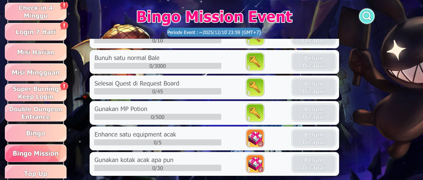 Menyelesaikan misi akan memberi kamu key dan item yang dapat digunakan untuk Bingo Exchange.