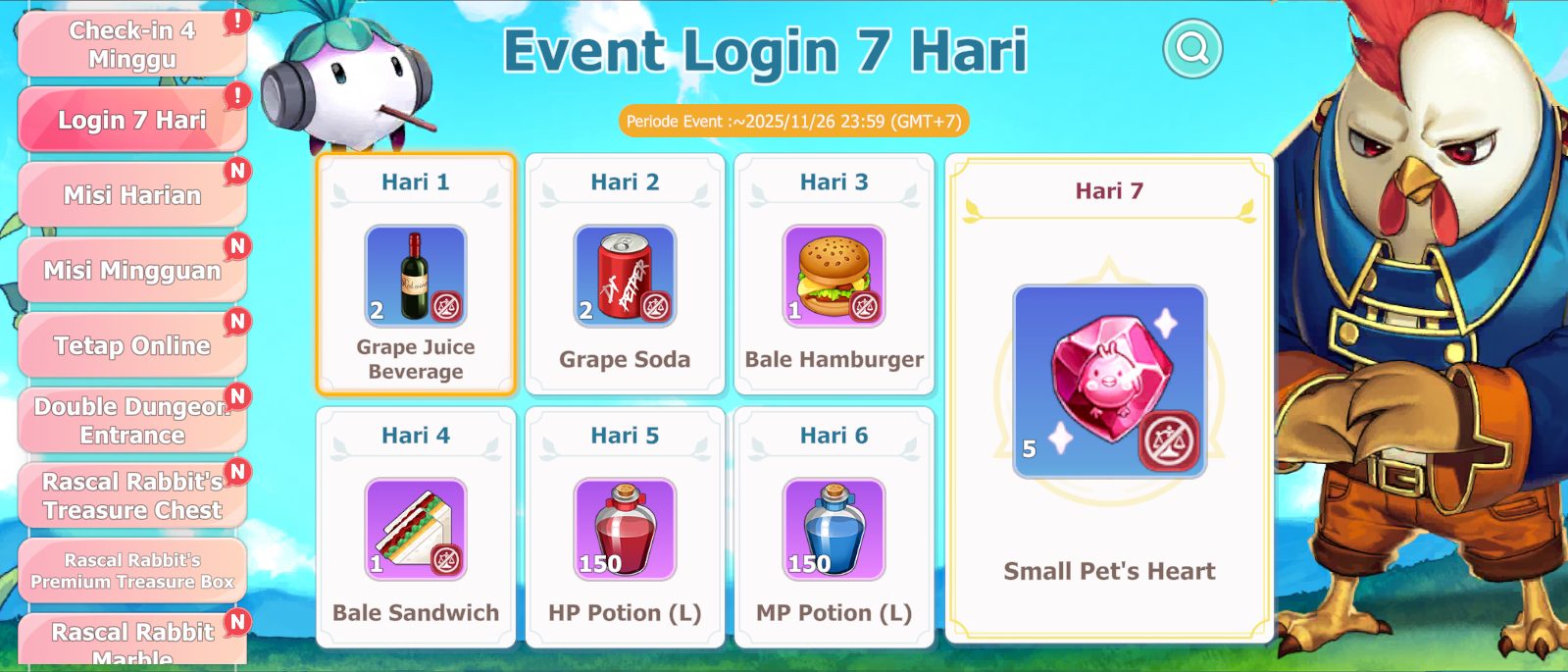 • Hadiah event login diberikan kepada player yang login setiap hari.