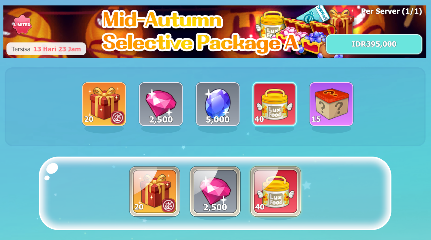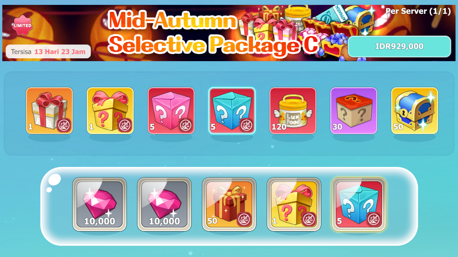 • Periode penjualan: Dari 2 Oktober (setelah maintenance) ~ 15 Oktober (UTC +7)
