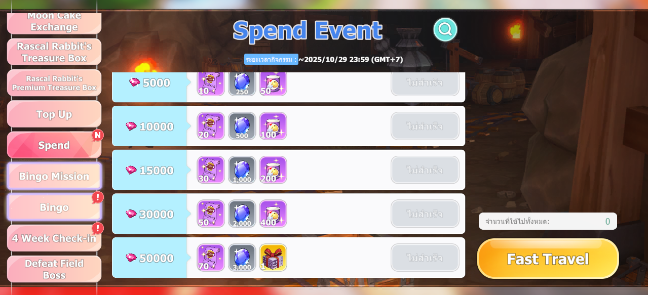 • ใช้ Ruby สะสมครบ 5,000: Heroic Combo EXP Scroll (x70) / Sapphire (x3,000) / Ooparts Summon Achievement Chest Ver.3 (x1)