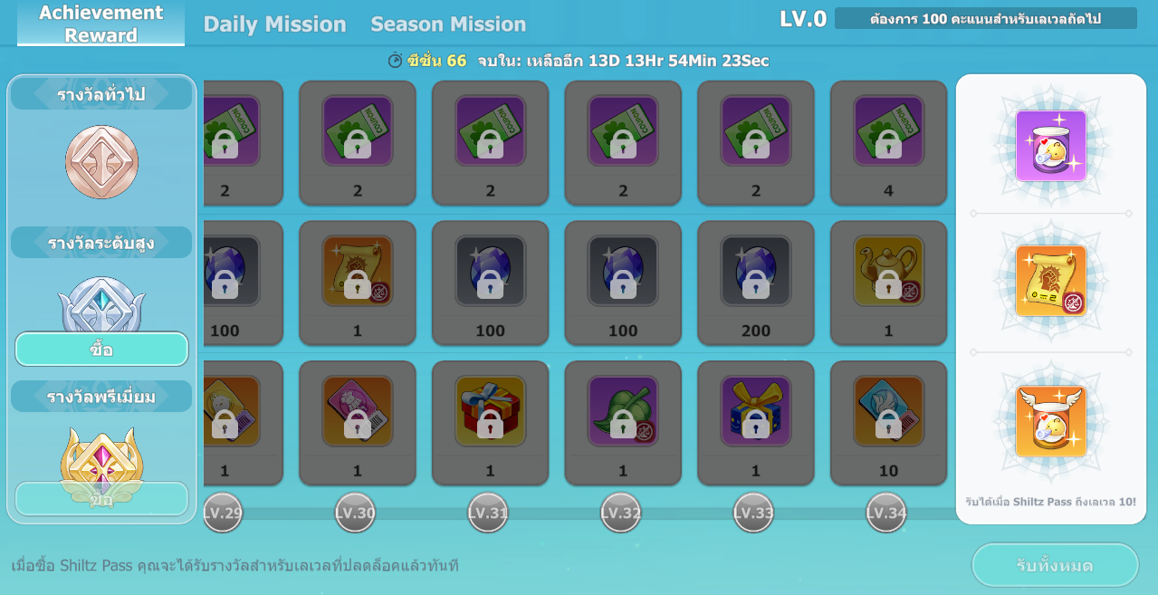 • สามารถรับรางวัลทั่วไปได้เมื่อ Shiltz Pass ของคุณเลเวลอัป