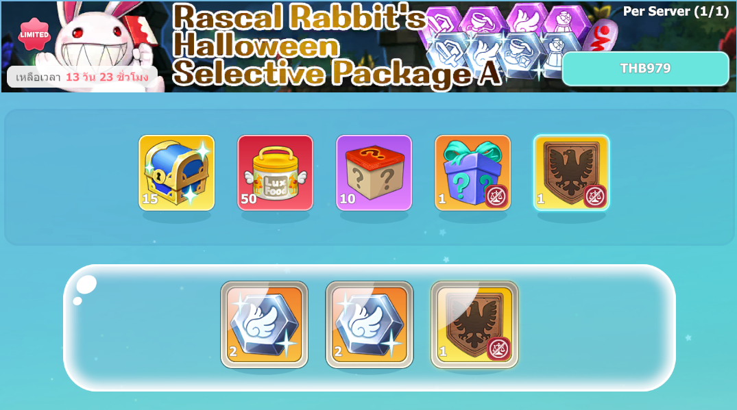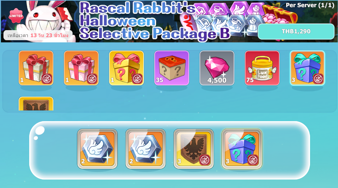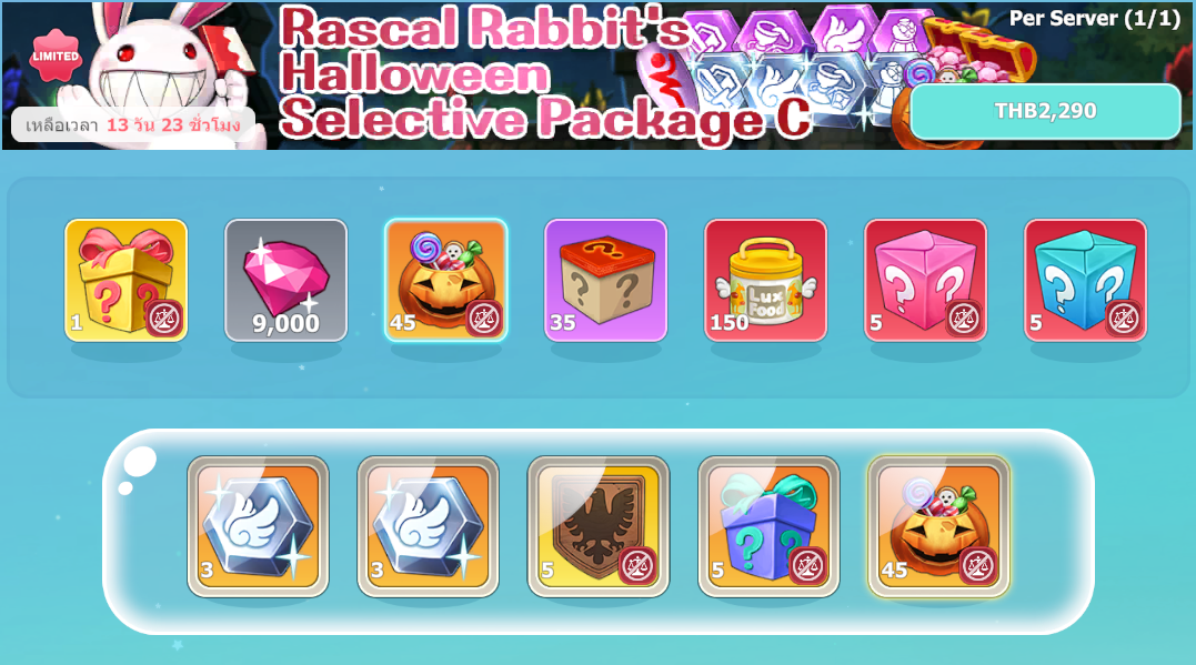 Shop ➡️ Event ➡️ Rascal Rabbit's Halloween Selective Package B