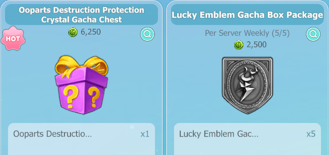 • Ooparts Destruction Protection Crystal Gacha Chest